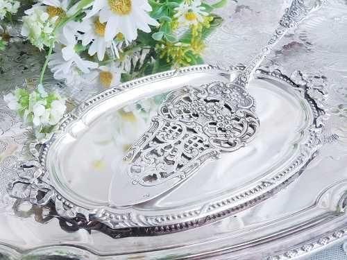 花かご装飾 ピアス細工の純銀ケーキサーバーです。