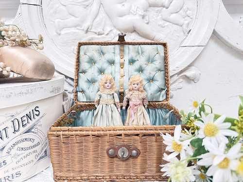 ビスクの優しい描き目に淡いピンクと水色のお揃いのドレスが可愛い仲良しさん♪