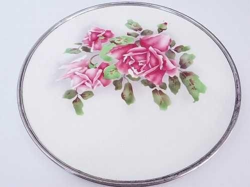 艶のある陶磁器プレートに美しいローズピンクの薔薇のモティーフ♪
