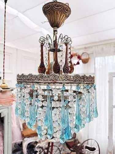 ブルーのクリスタルティアドロップ 1灯シャンデリアです。