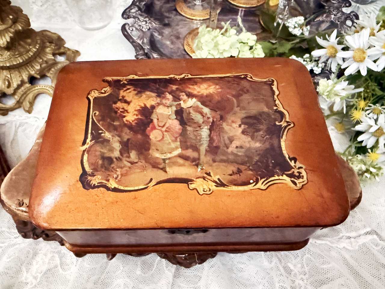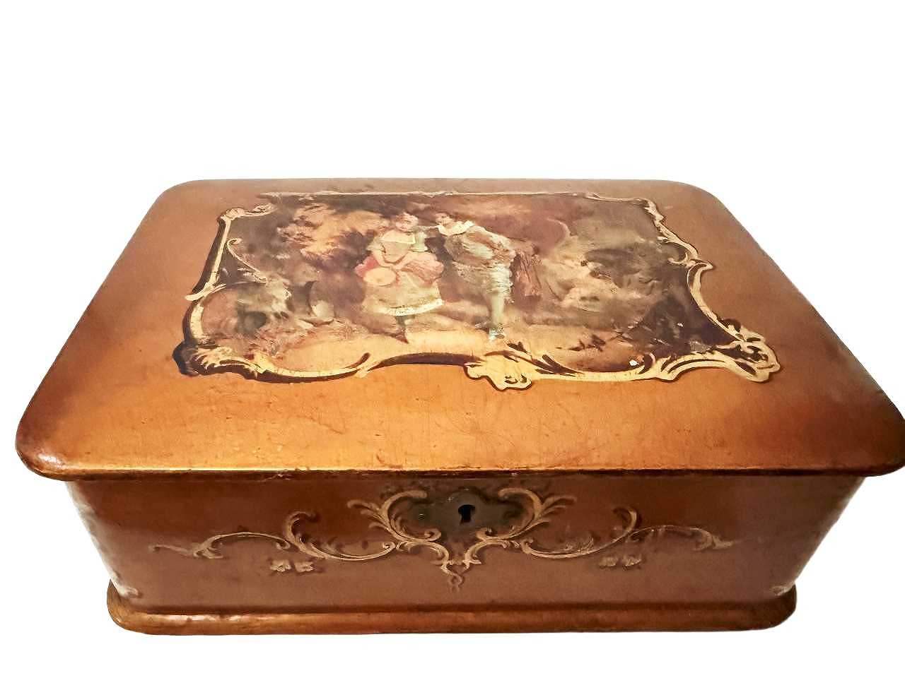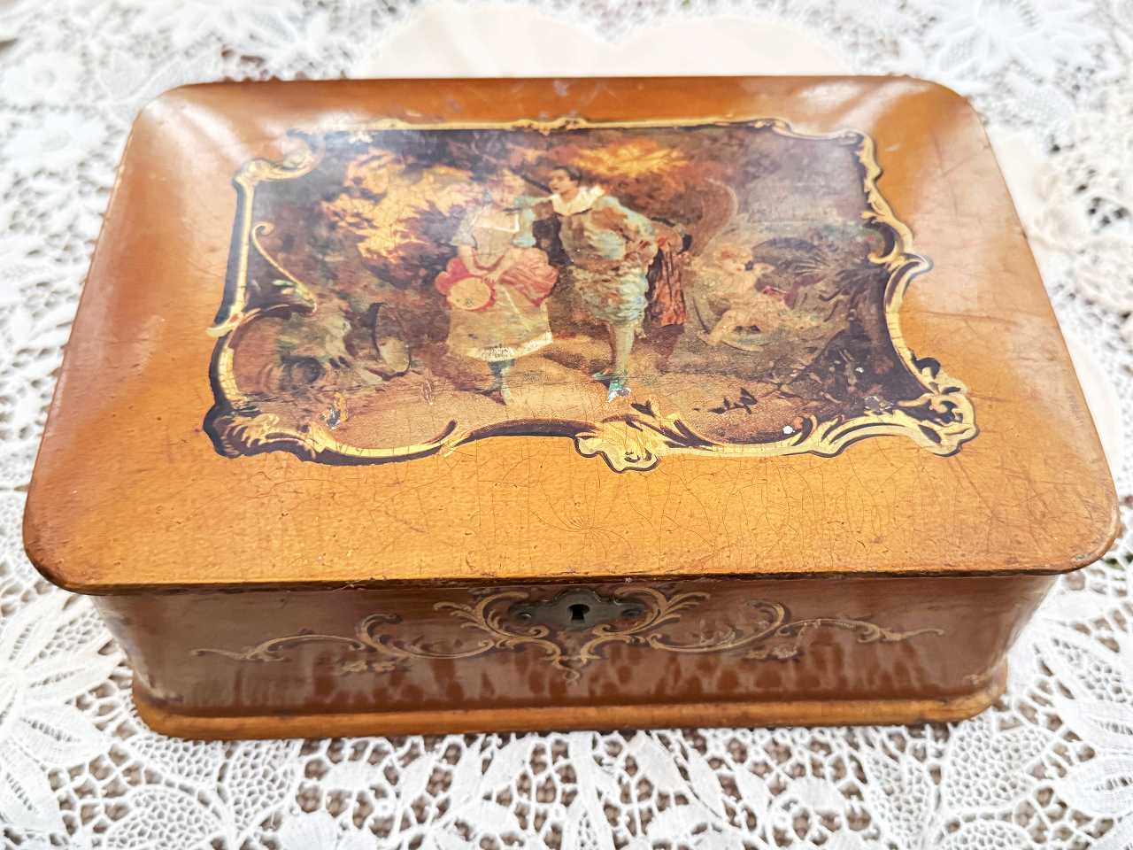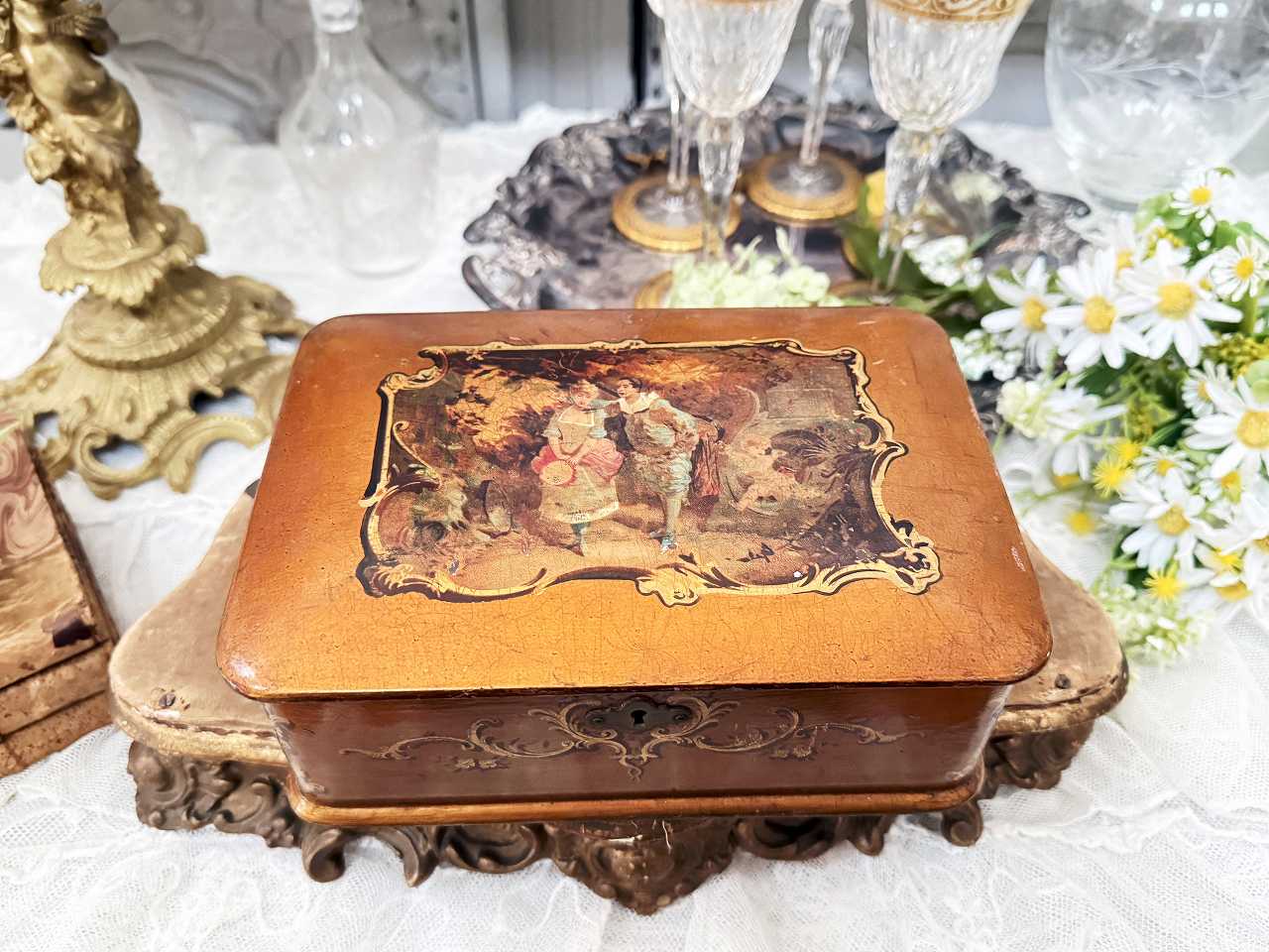 優美な貴族カップルのワトー版画が施されたボックスです。