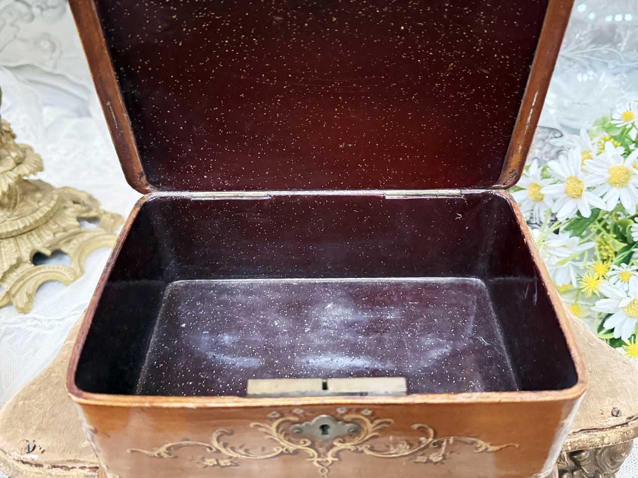 アンティークのお箱としては雰囲気を壊すものではございません。