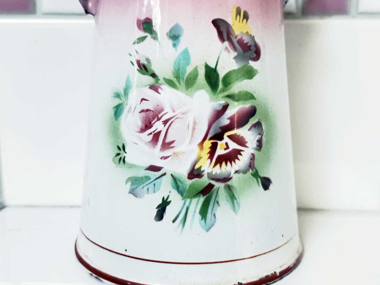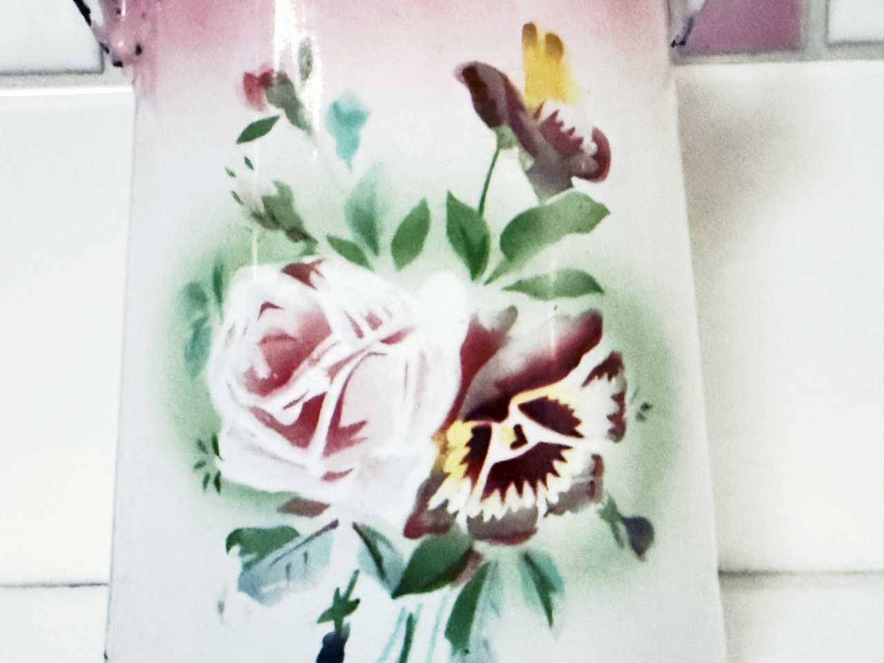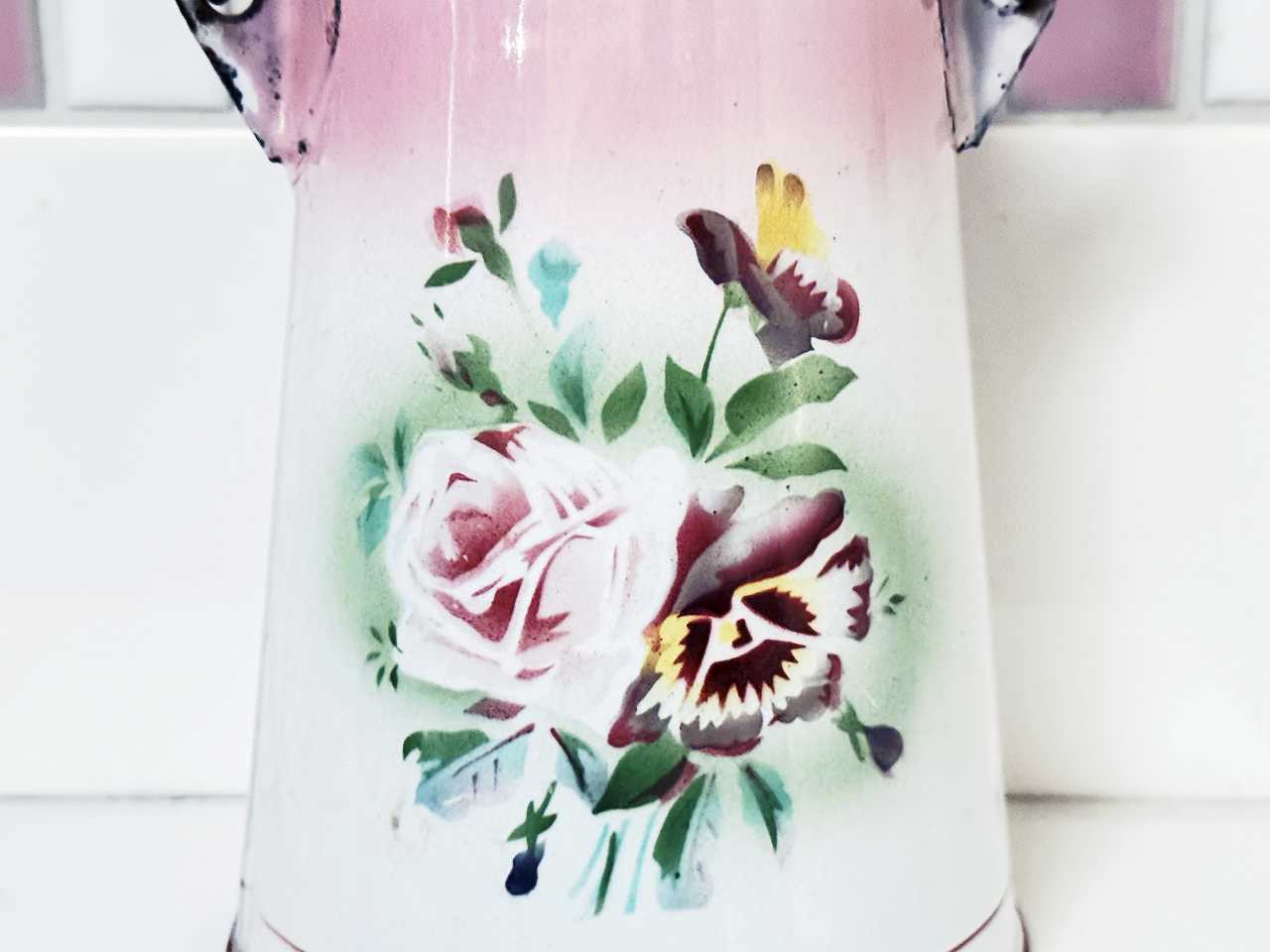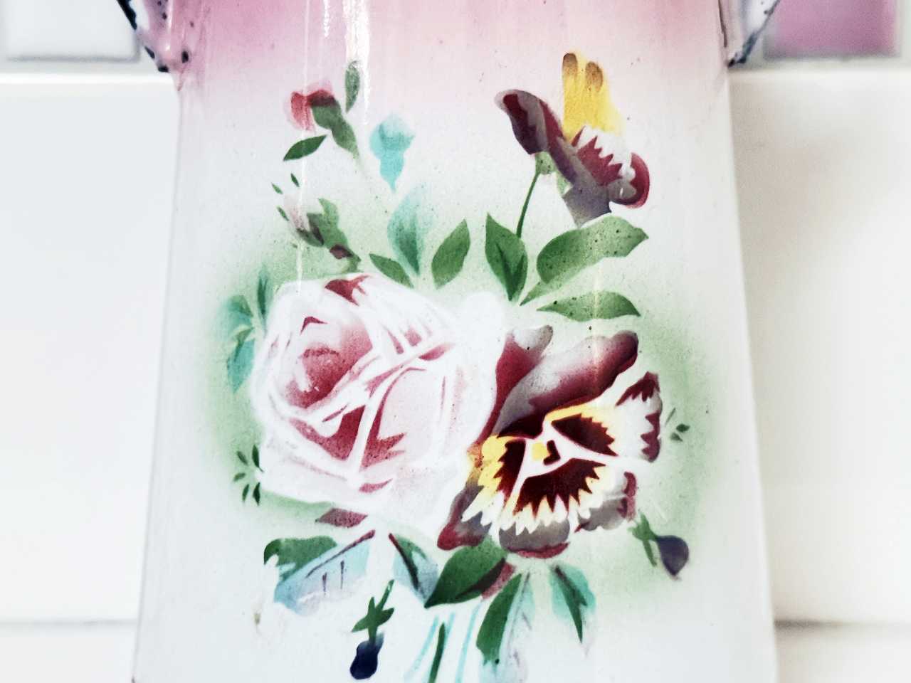 レア ピンクのぼかし 薔薇と薔薇とパンジー柄ミルクポット