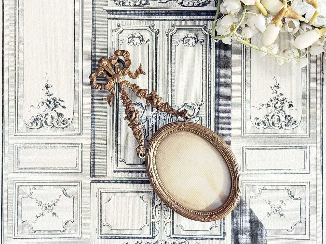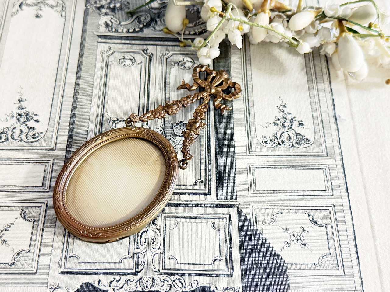 小さなサイズながらも細やかな意匠を凝らしたフレームには