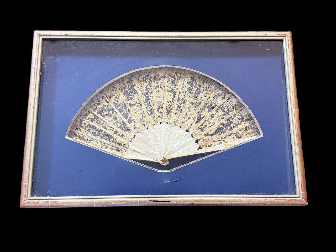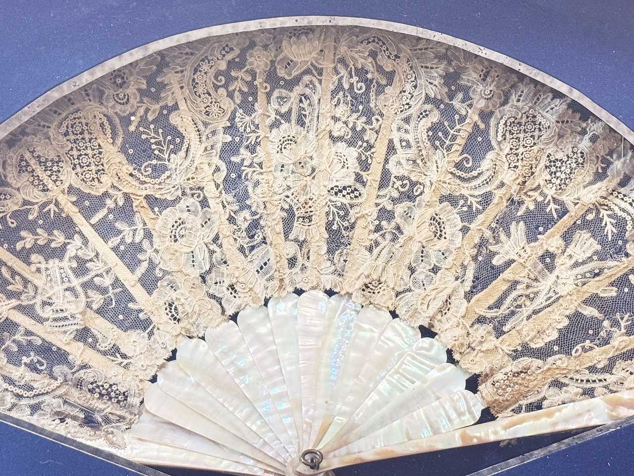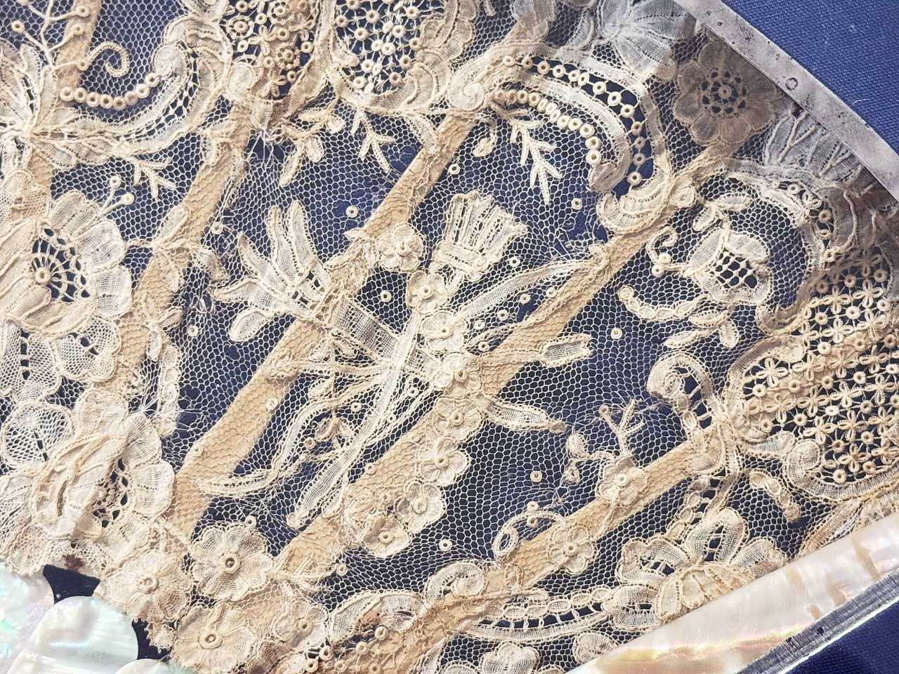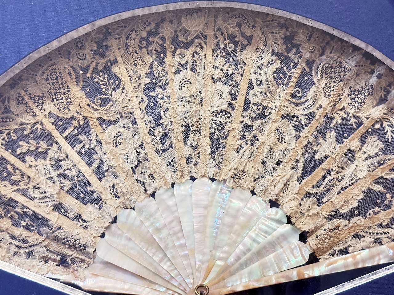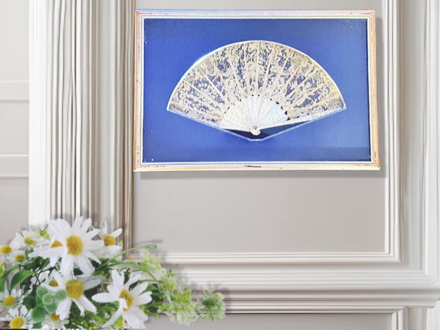 マリアージュの花嫁のお支度品、ポワンドガーズレースの扇子入り額です。