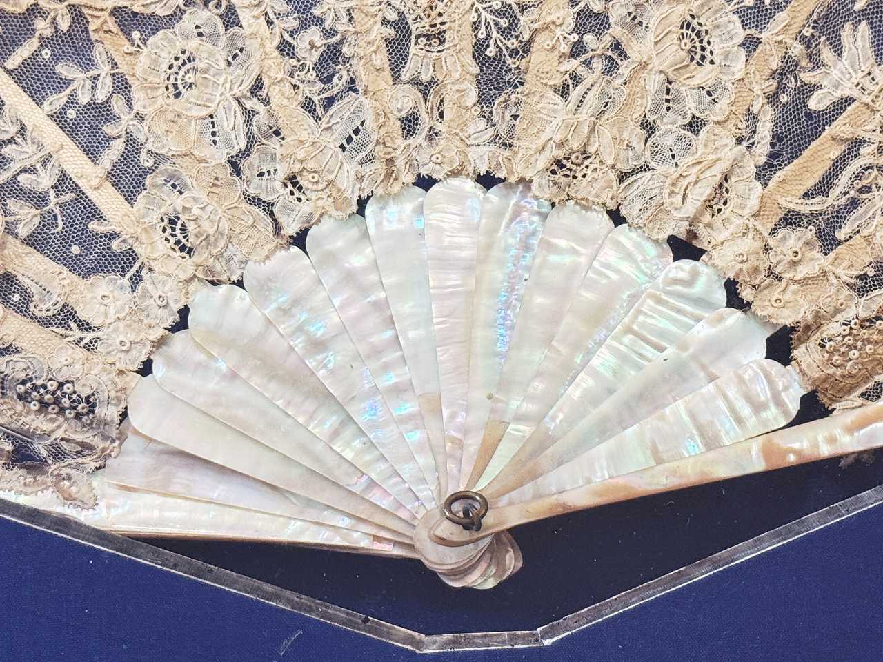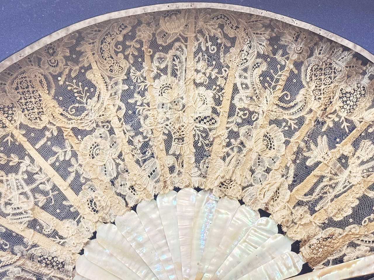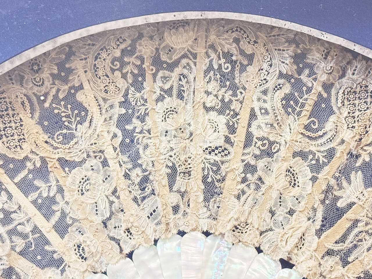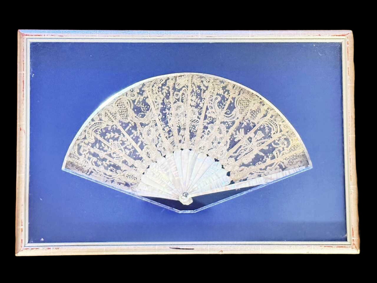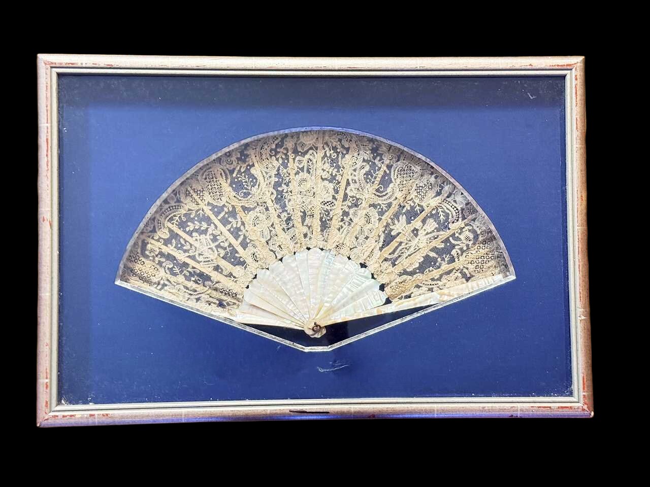 マリアージュの花嫁のお支度品、ポワンドガーズレースの扇子入り額です。