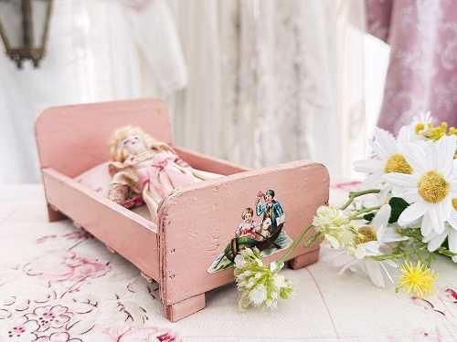 木製 ピンク ドールベッド(A)