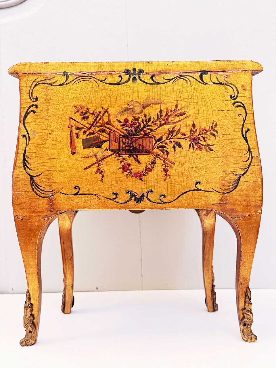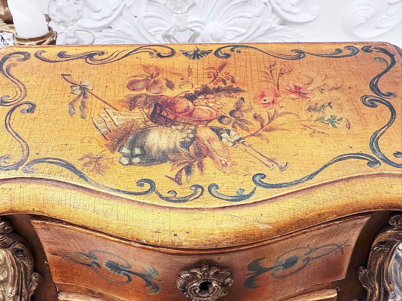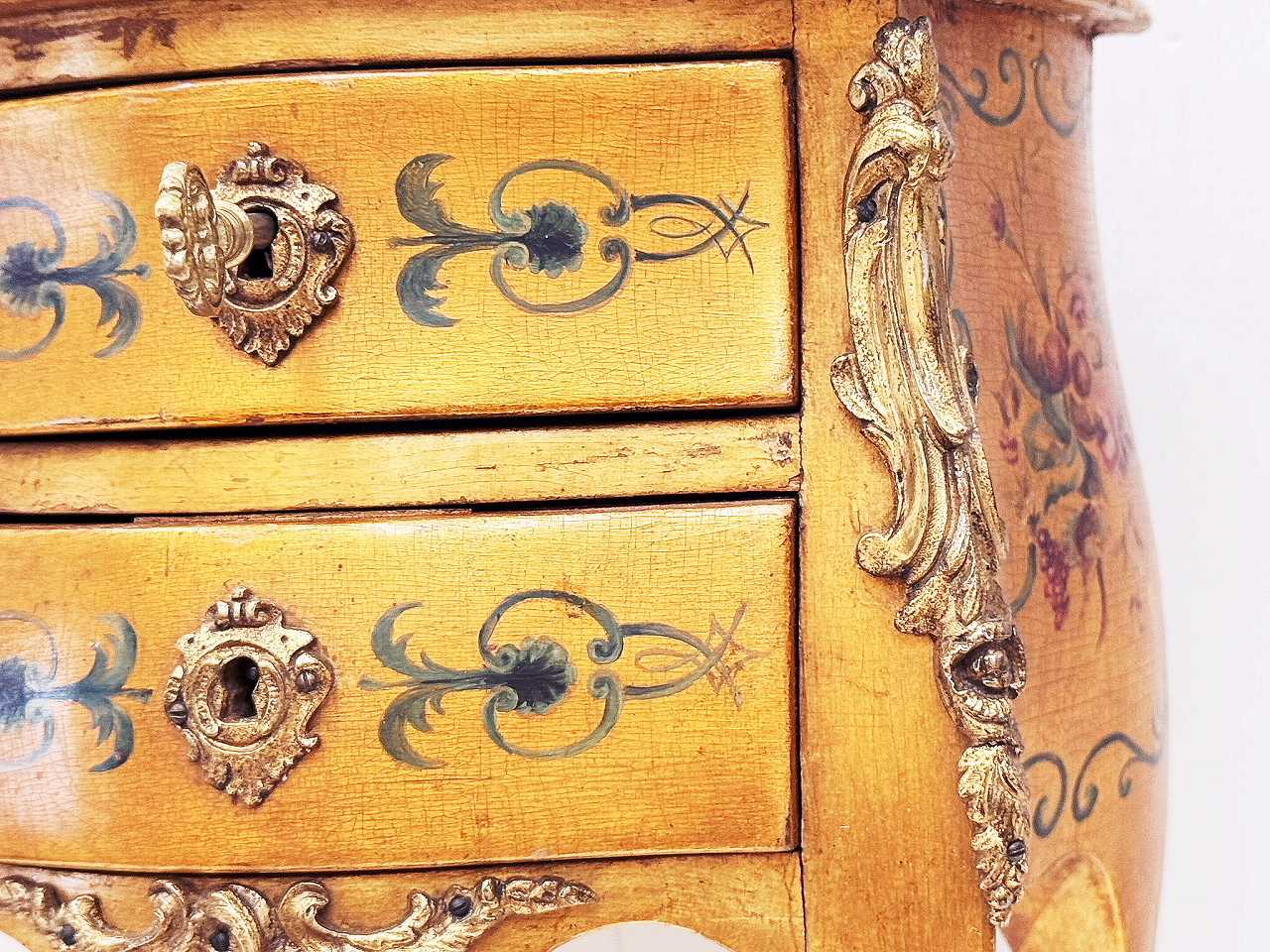 重厚なブロンズの装飾と手描きの愛らしい柄が全面に施され