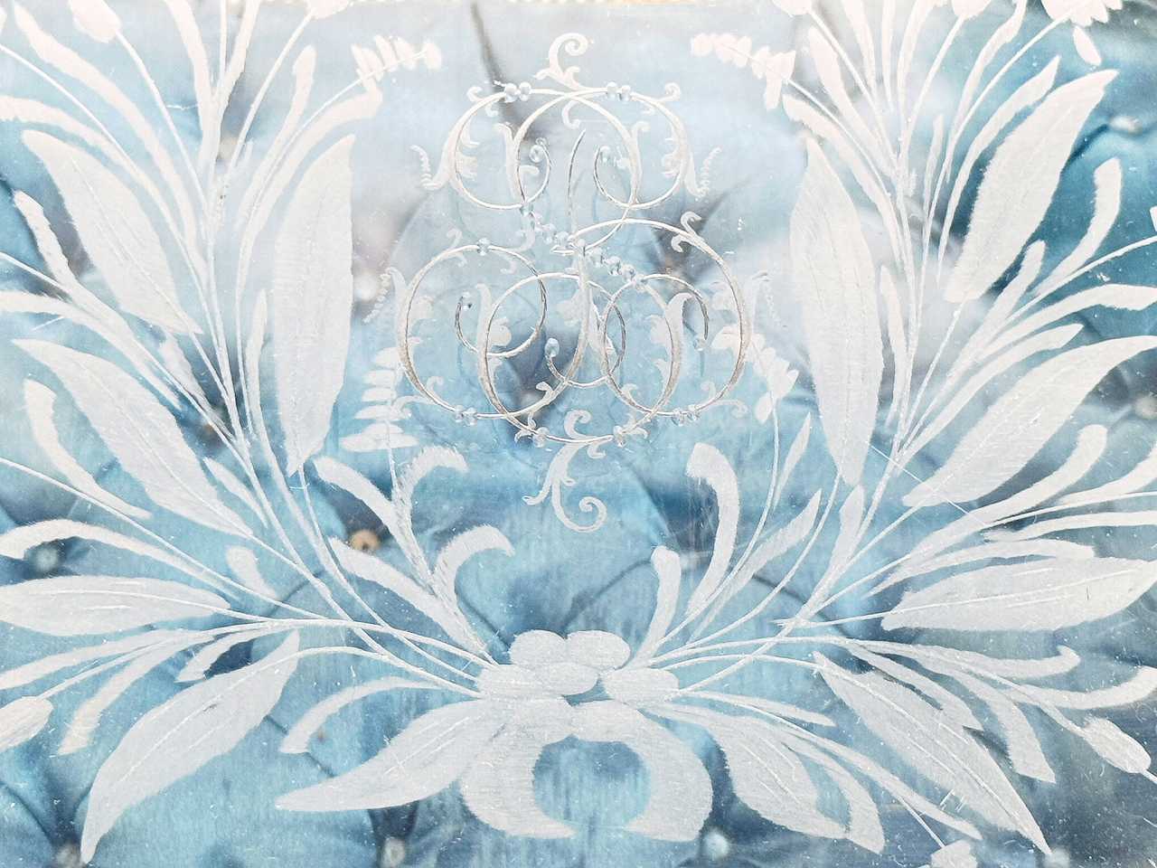 重厚な面取りガラス全面にはしなやかなグラヴィール彫刻が施され