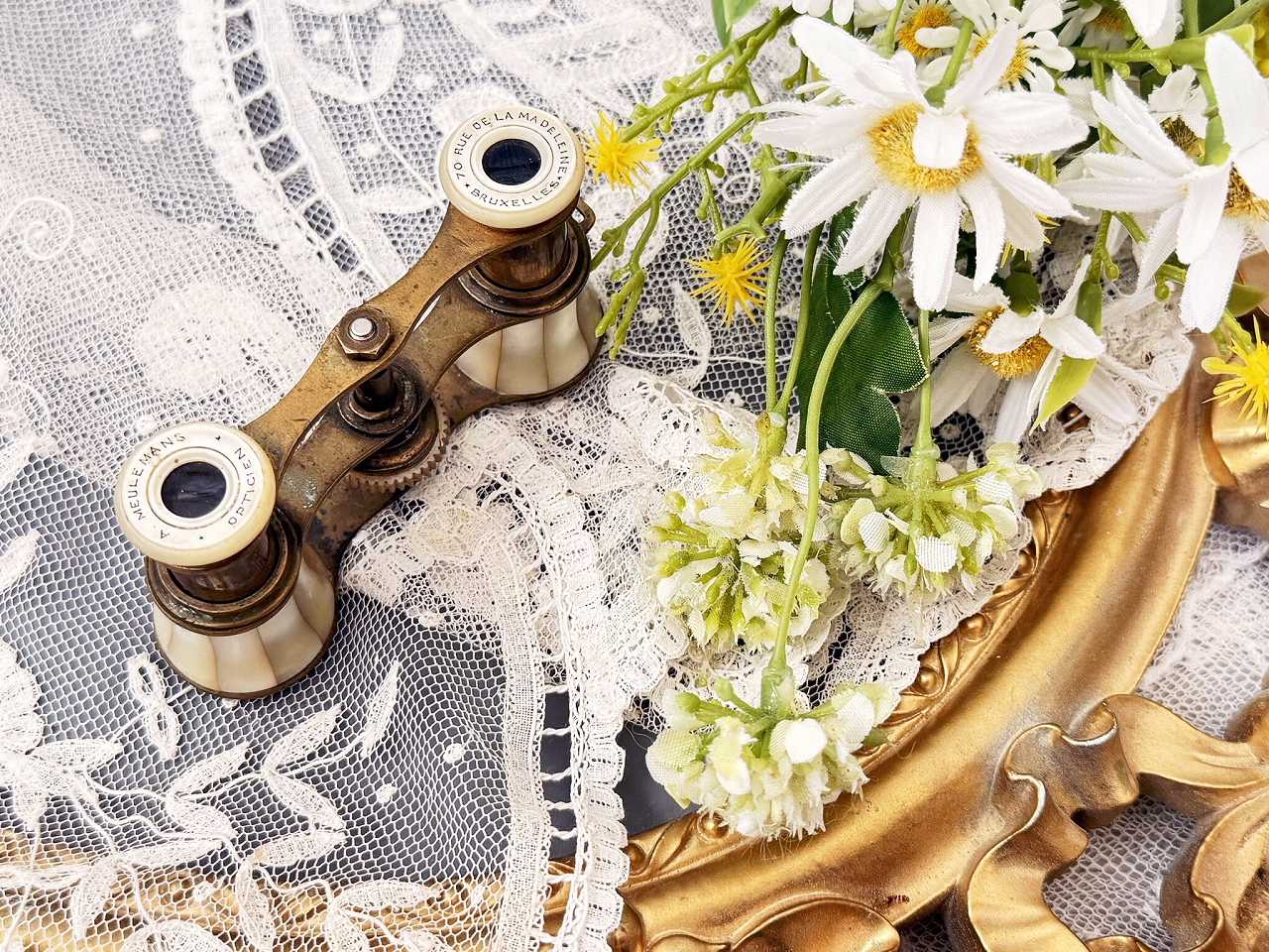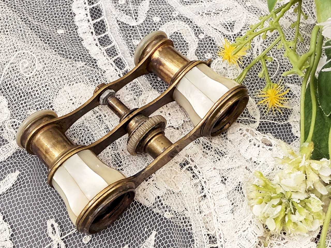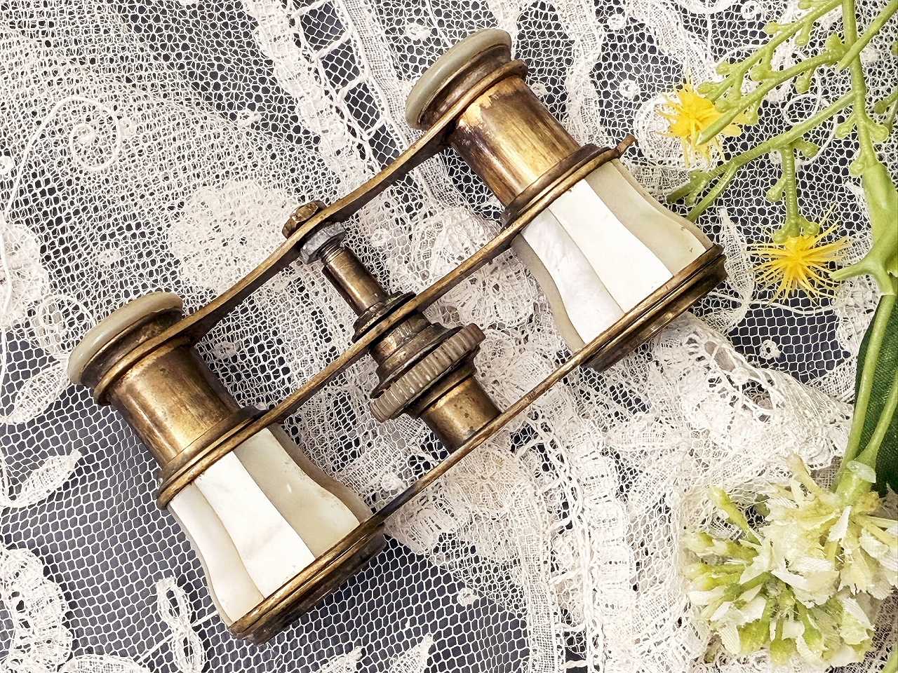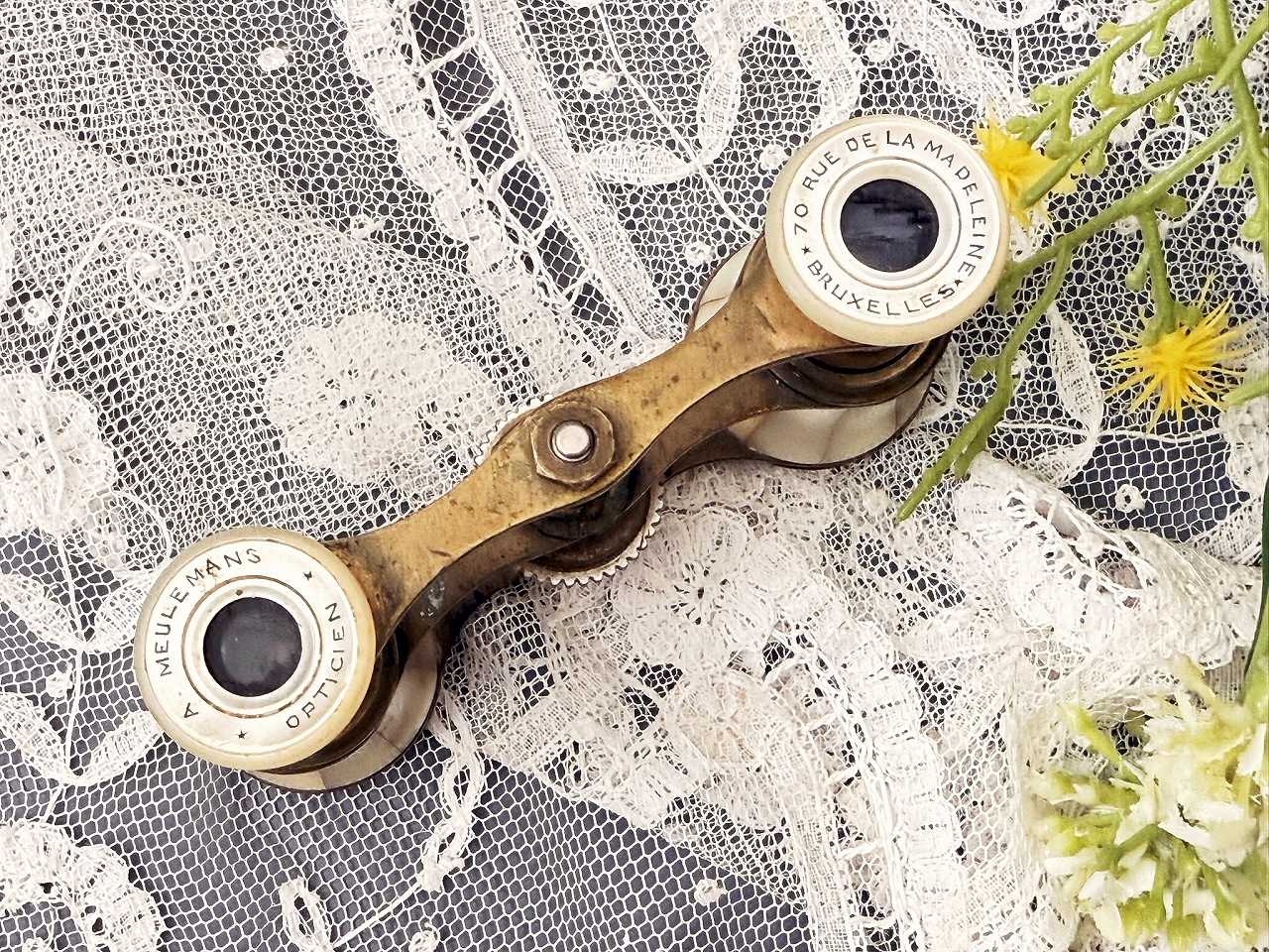 フランスの高級サロン系アンティークフェアで買い付けましたマザーオブパール(白蝶貝)の双眼鏡です。
