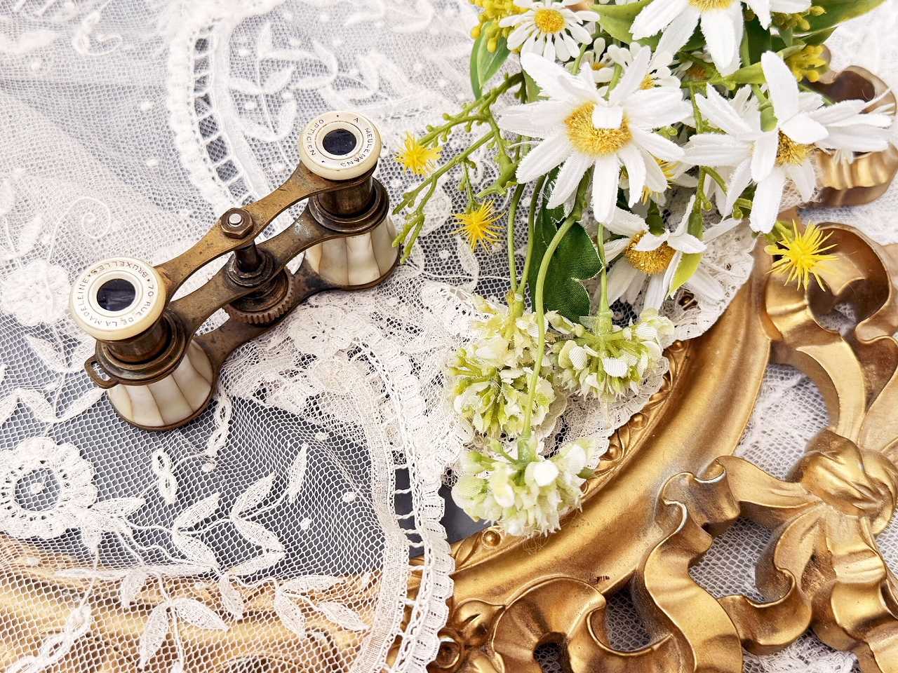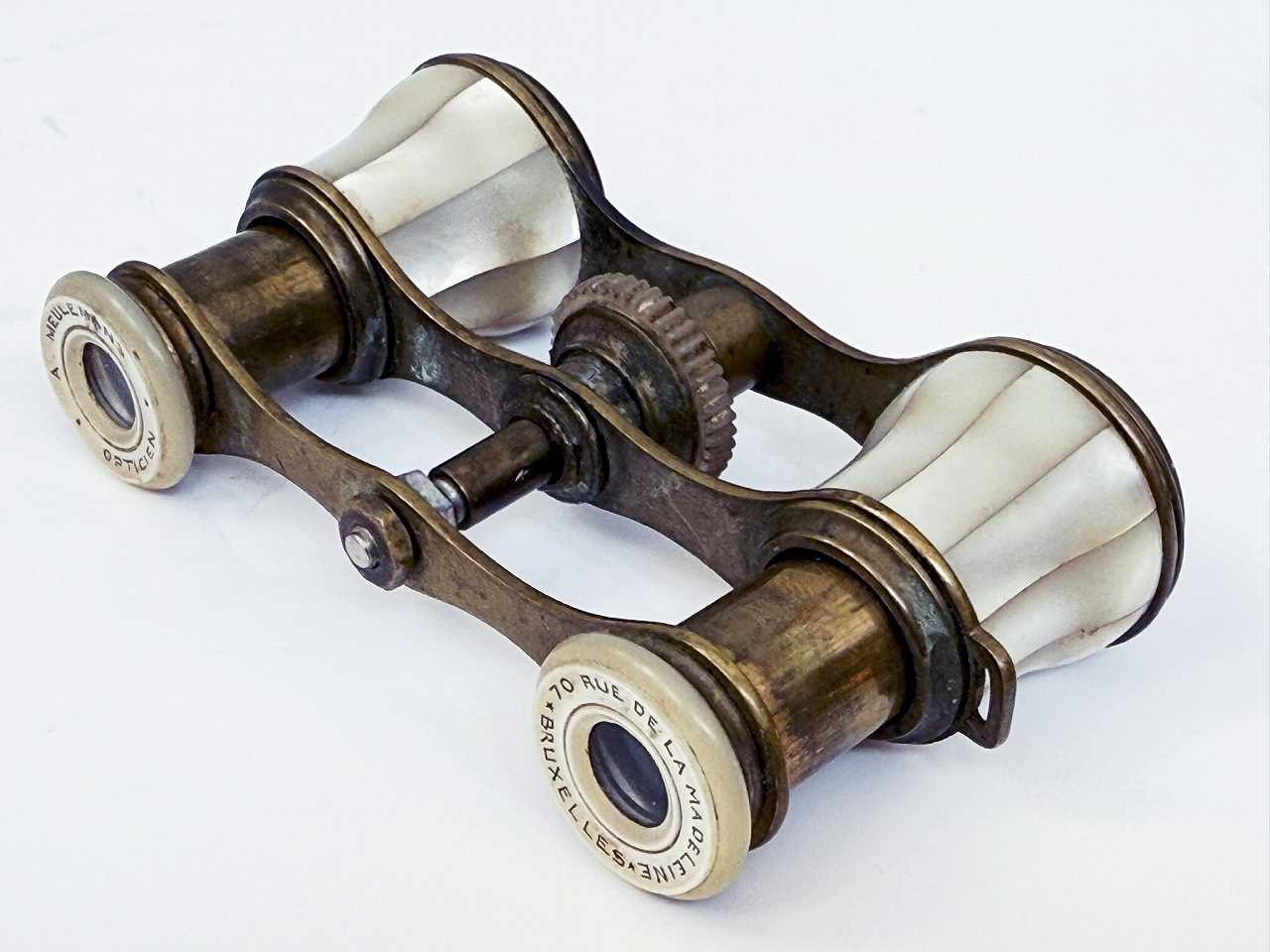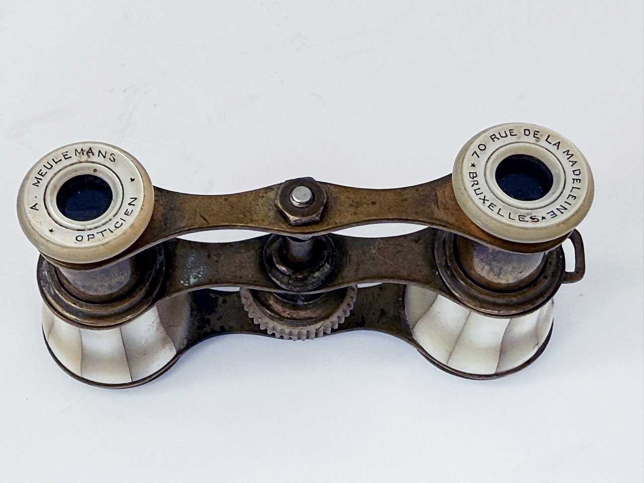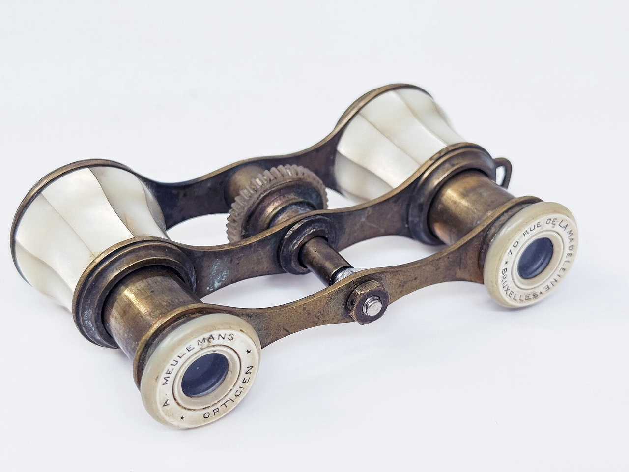 フランスの高級サロン系アンティークフェアで買い付けましたマザーオブパール(白蝶貝)の双眼鏡です。