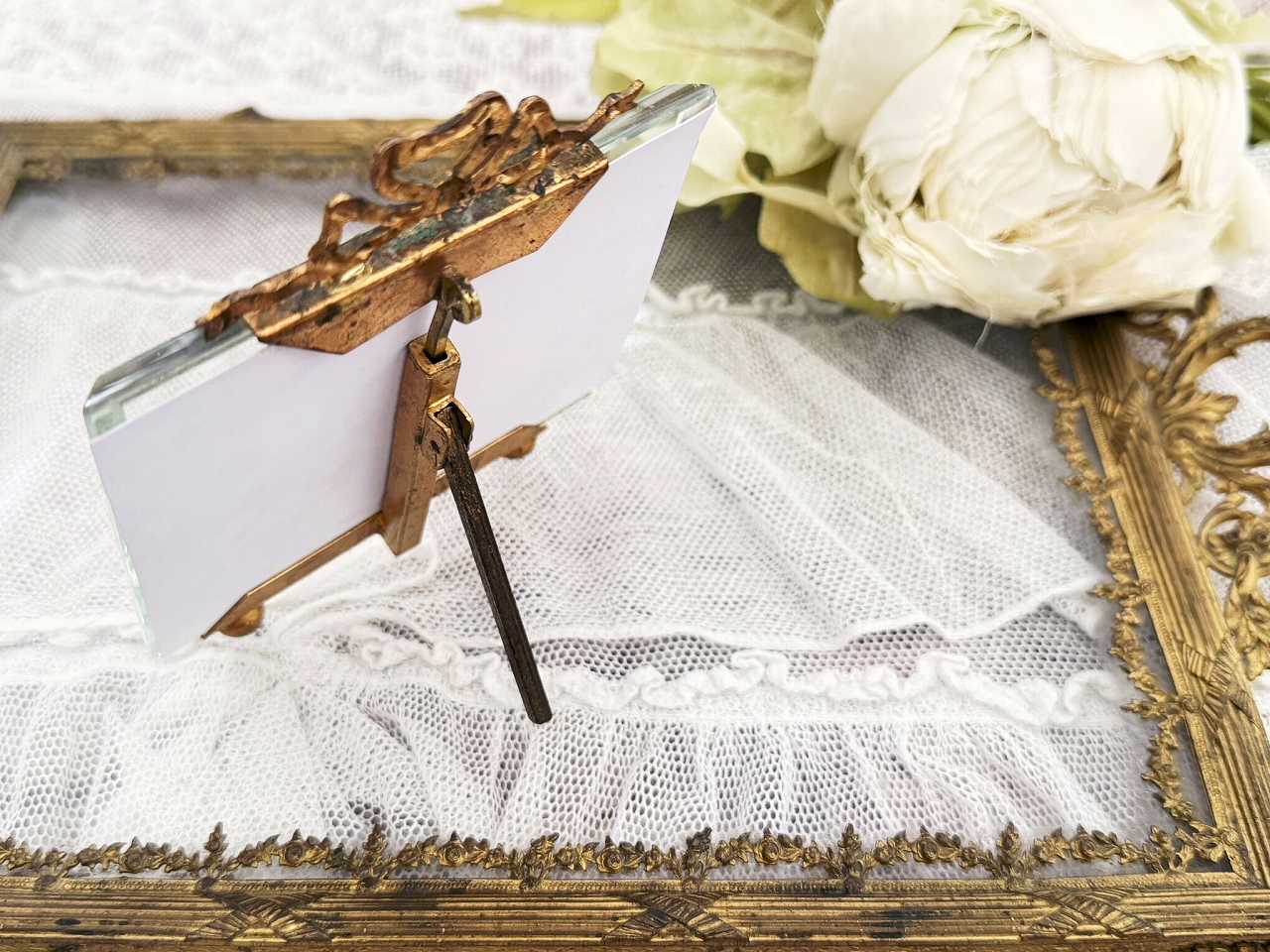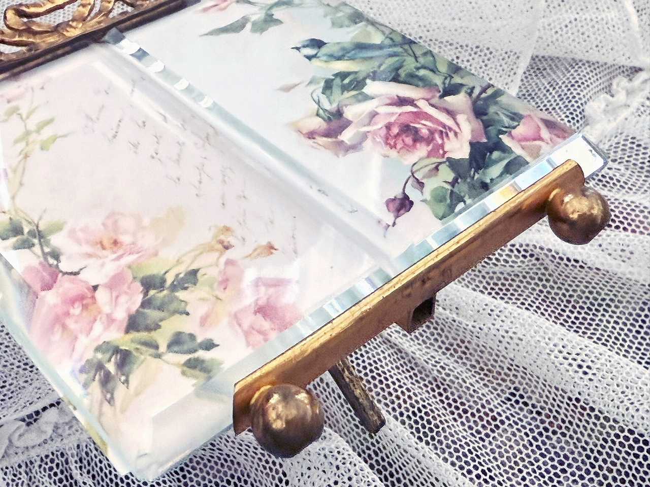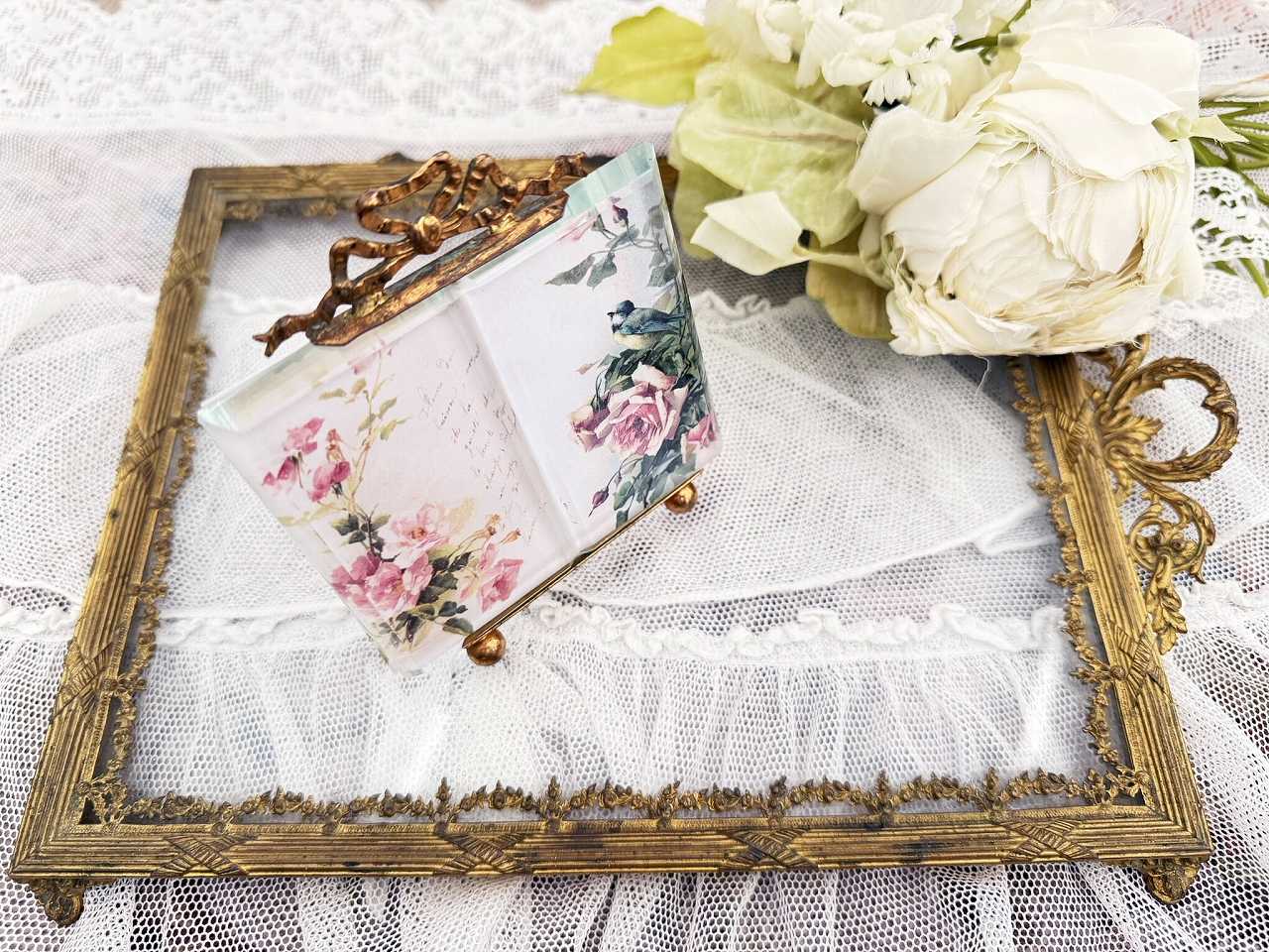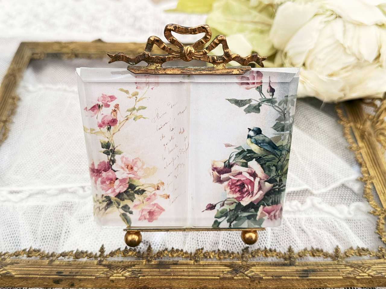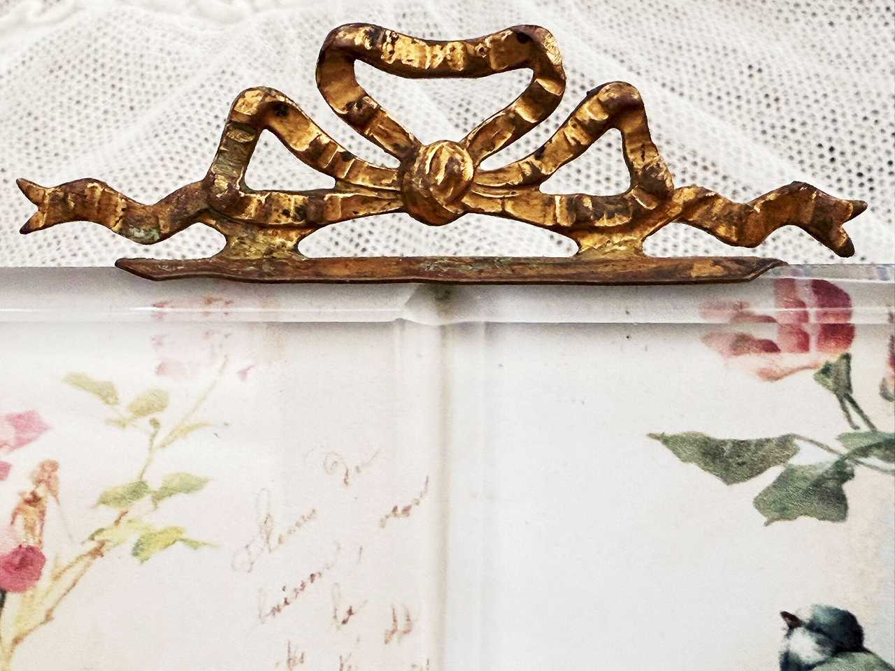 可憐なリボンの装飾と重厚な面取りガラスの美しいフォトフレーム。