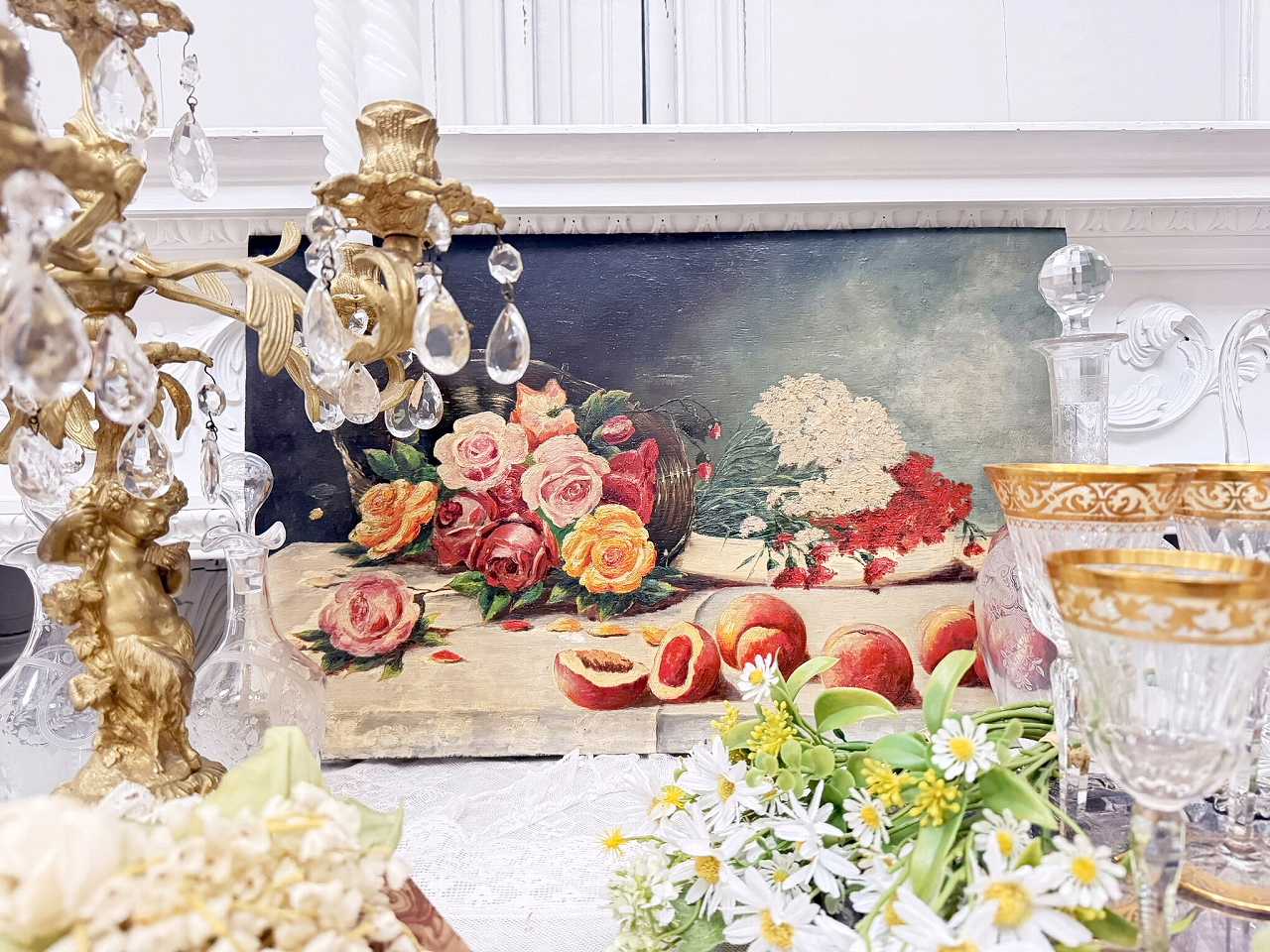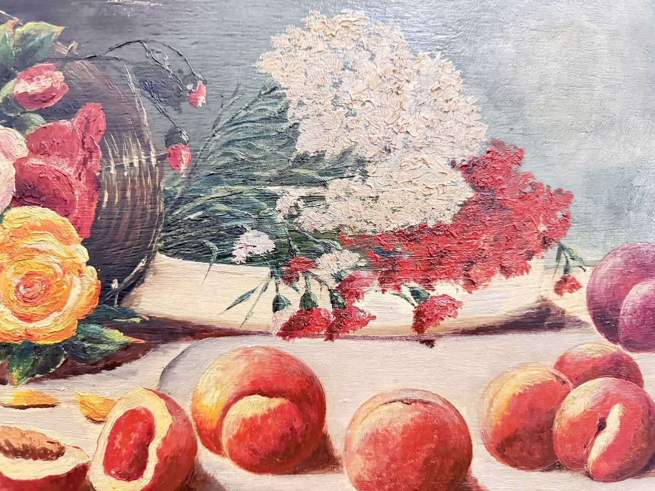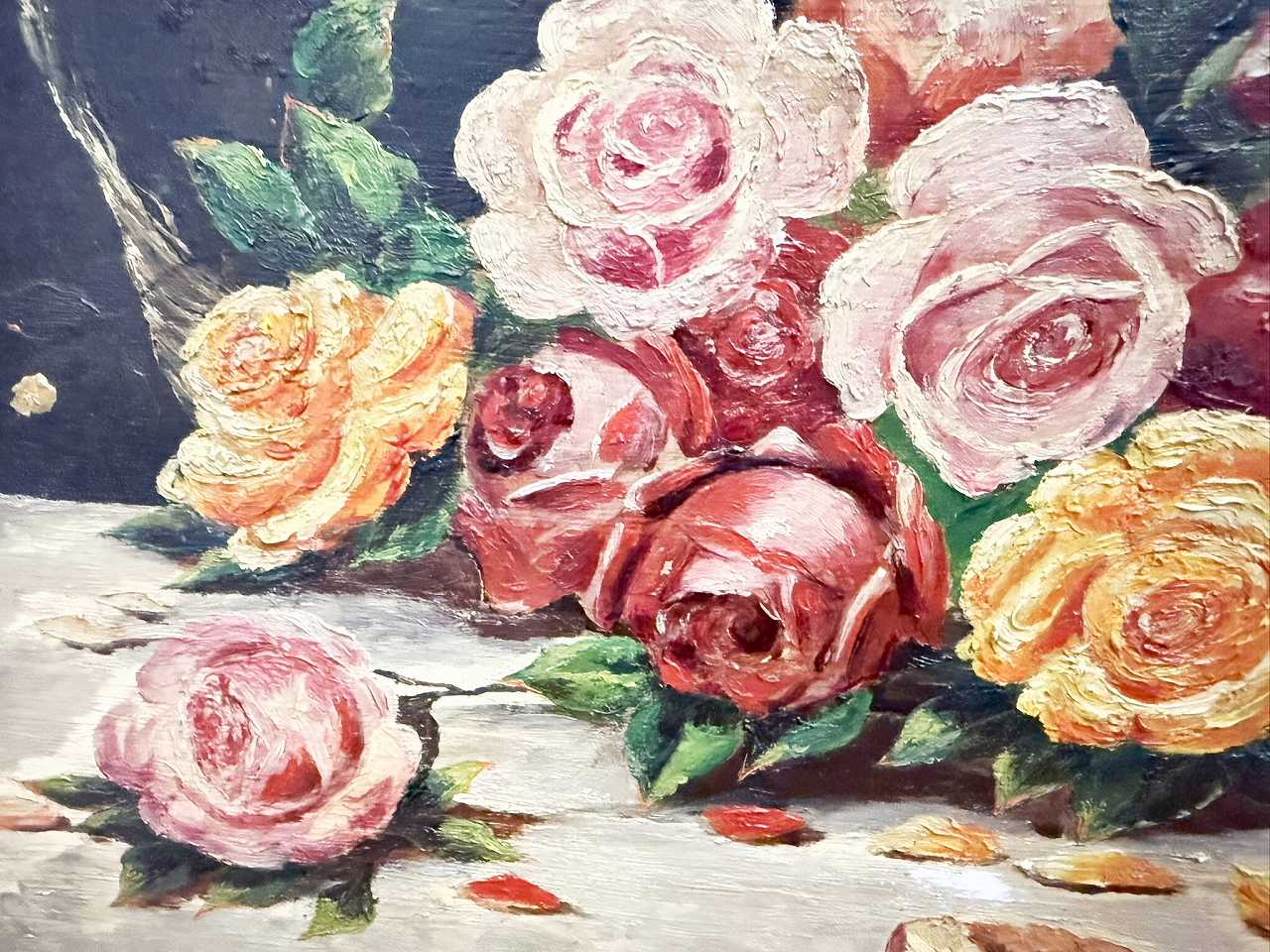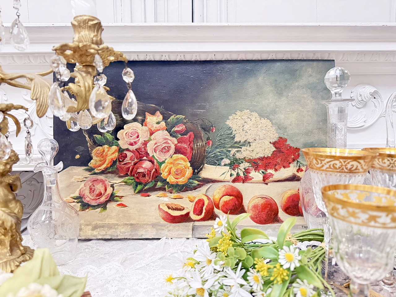 フランス油絵 『食卓の上の薔薇と果実』