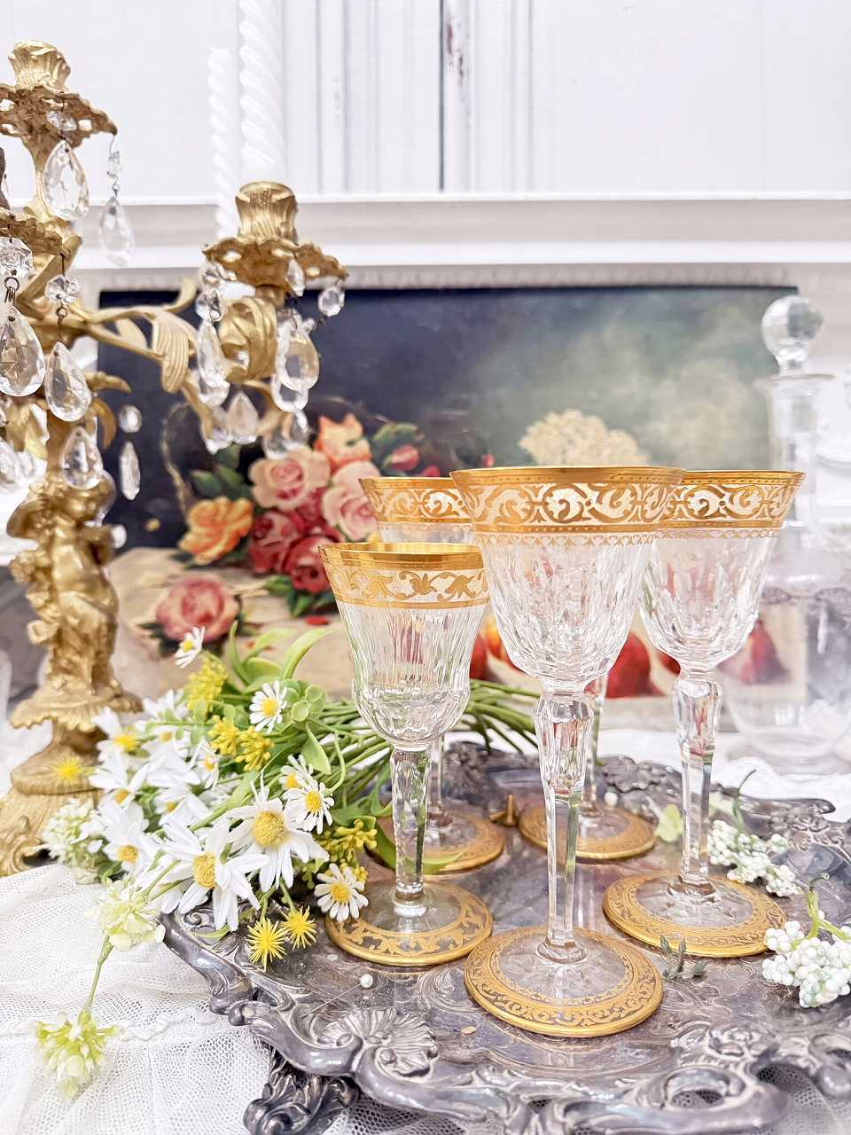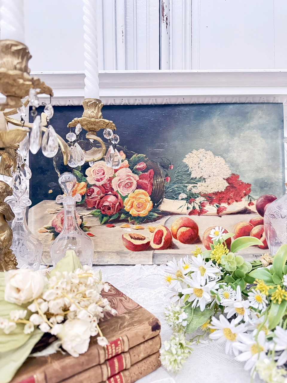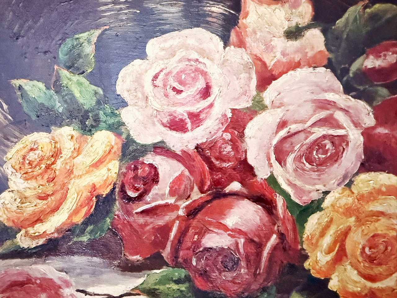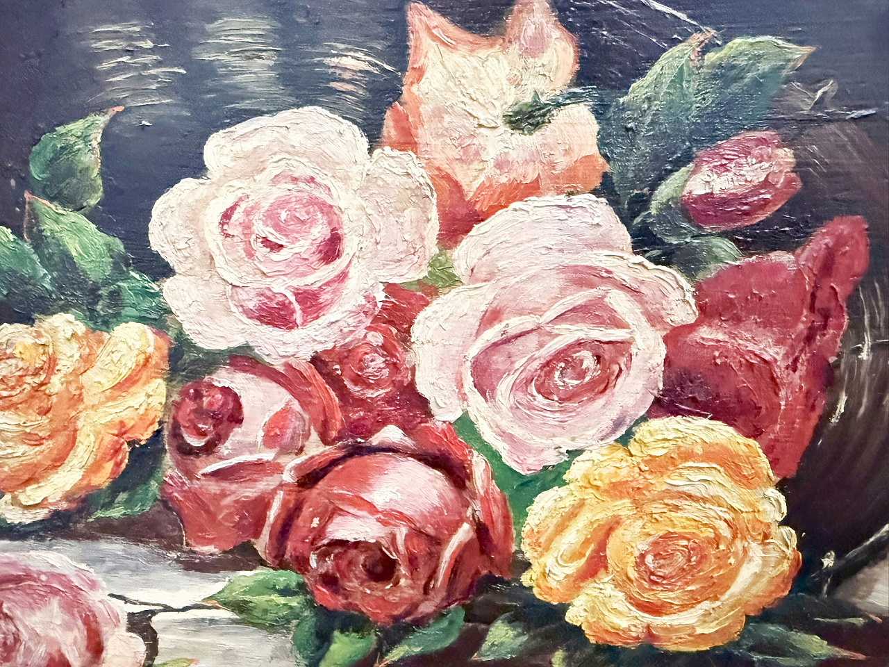 フランス油絵 『食卓の上の薔薇と果実』