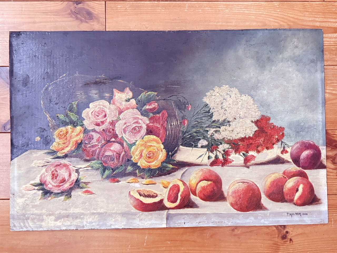 パリの画廊より買い付けました『F. WALTHER 1942年』フランス油彩静物画油絵です。