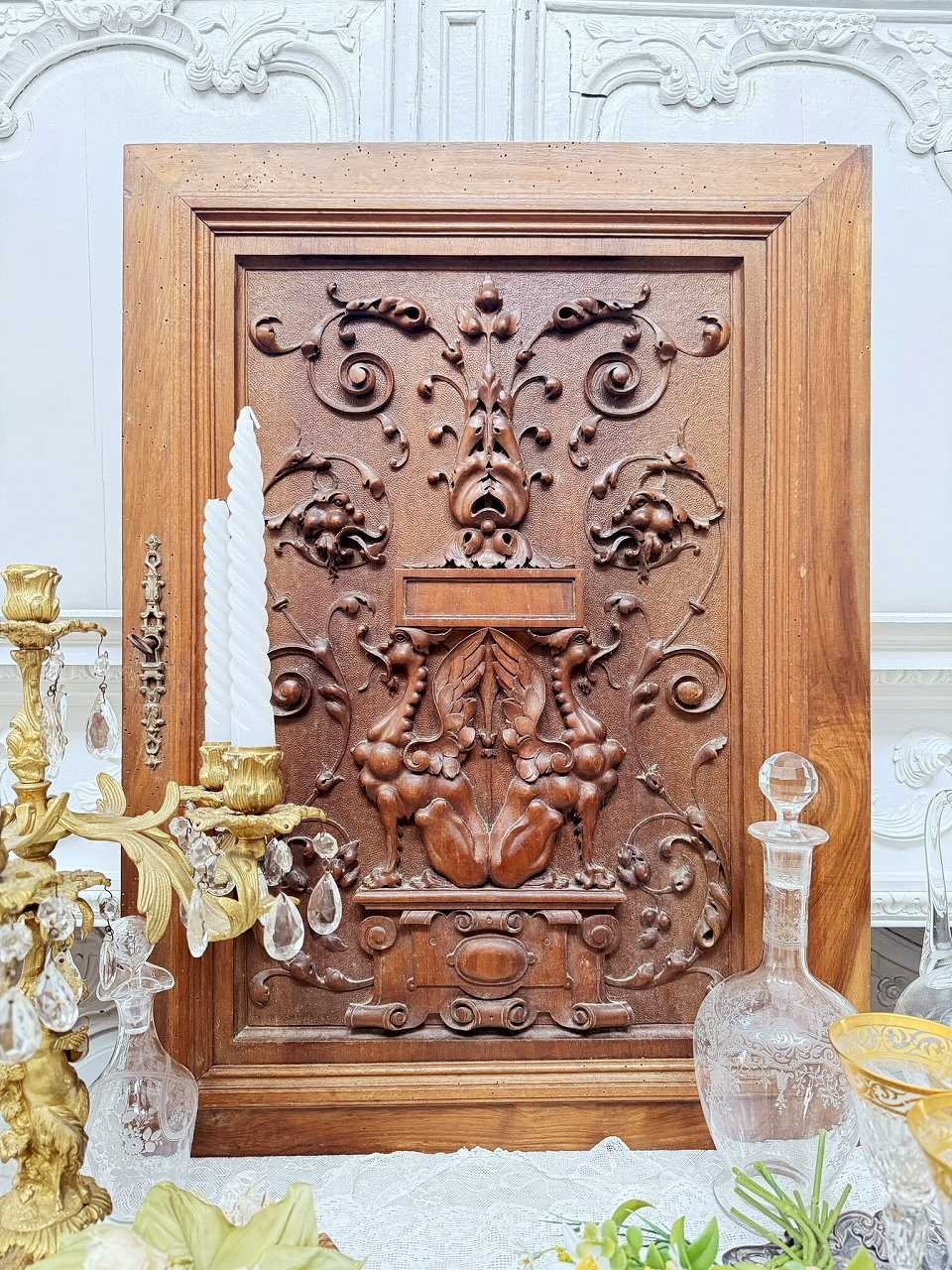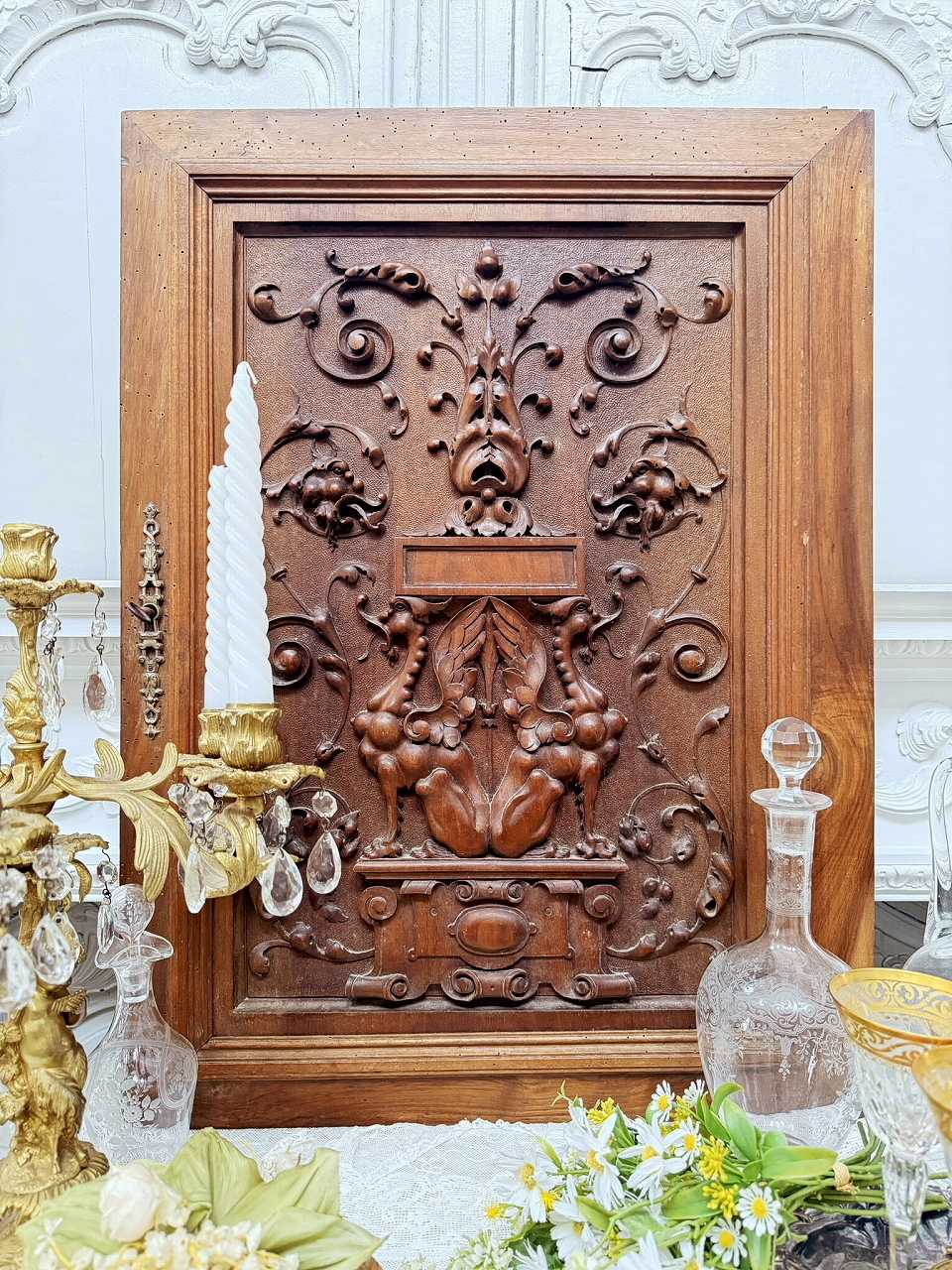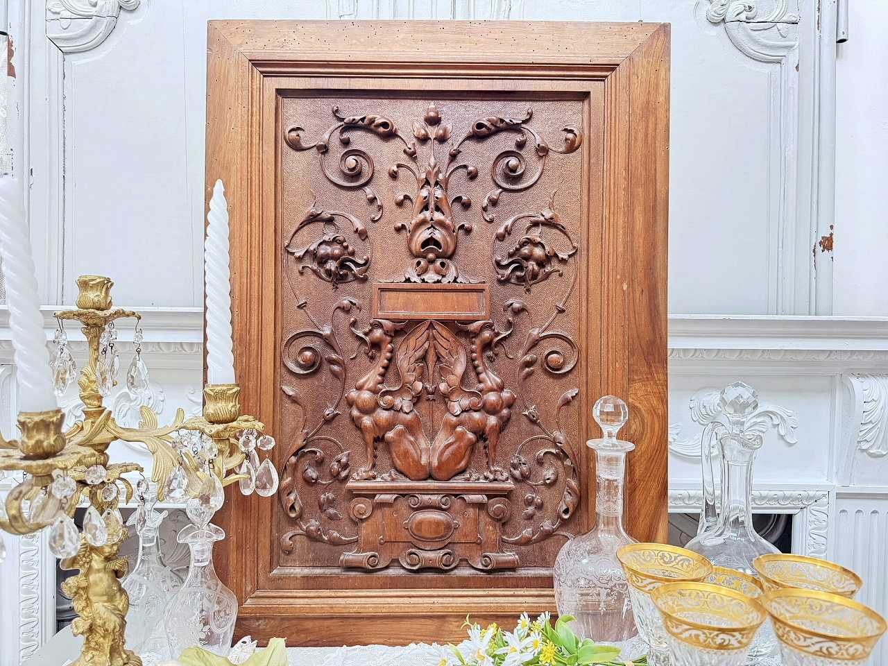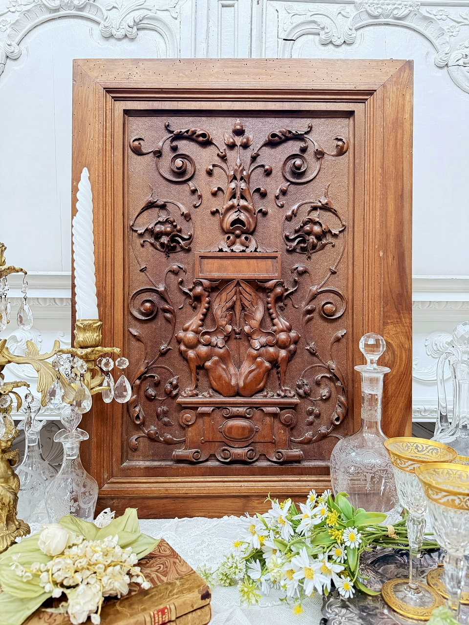 フランス家具の扉(ドアパネル)として作られた、彫刻装飾パネルです。