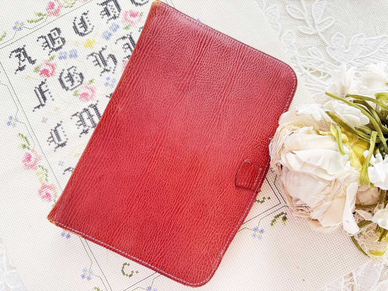 レザーの表紙を開けると、内側にピンクのモアレ地が貼ってあり